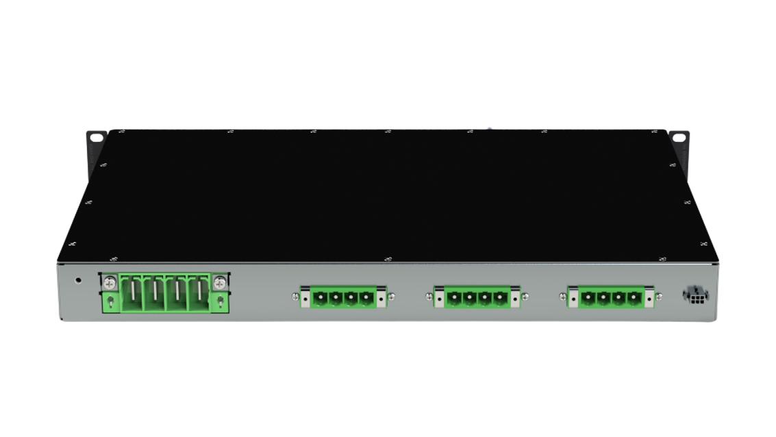 - Modular three-channel switch capable of powering three LCM12K shelves